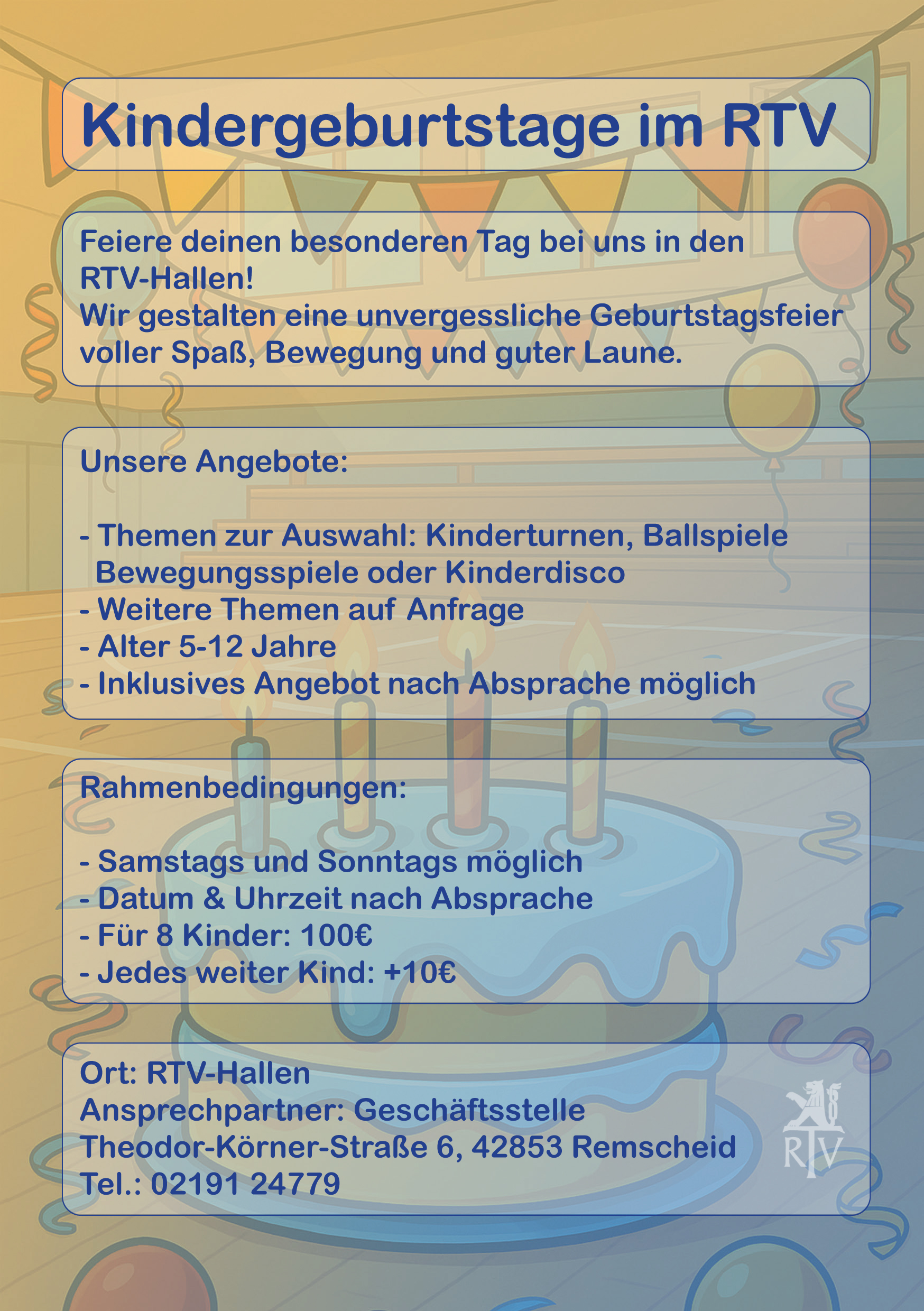 Feiere Deinen Kindergeburtstag beim RTV!
