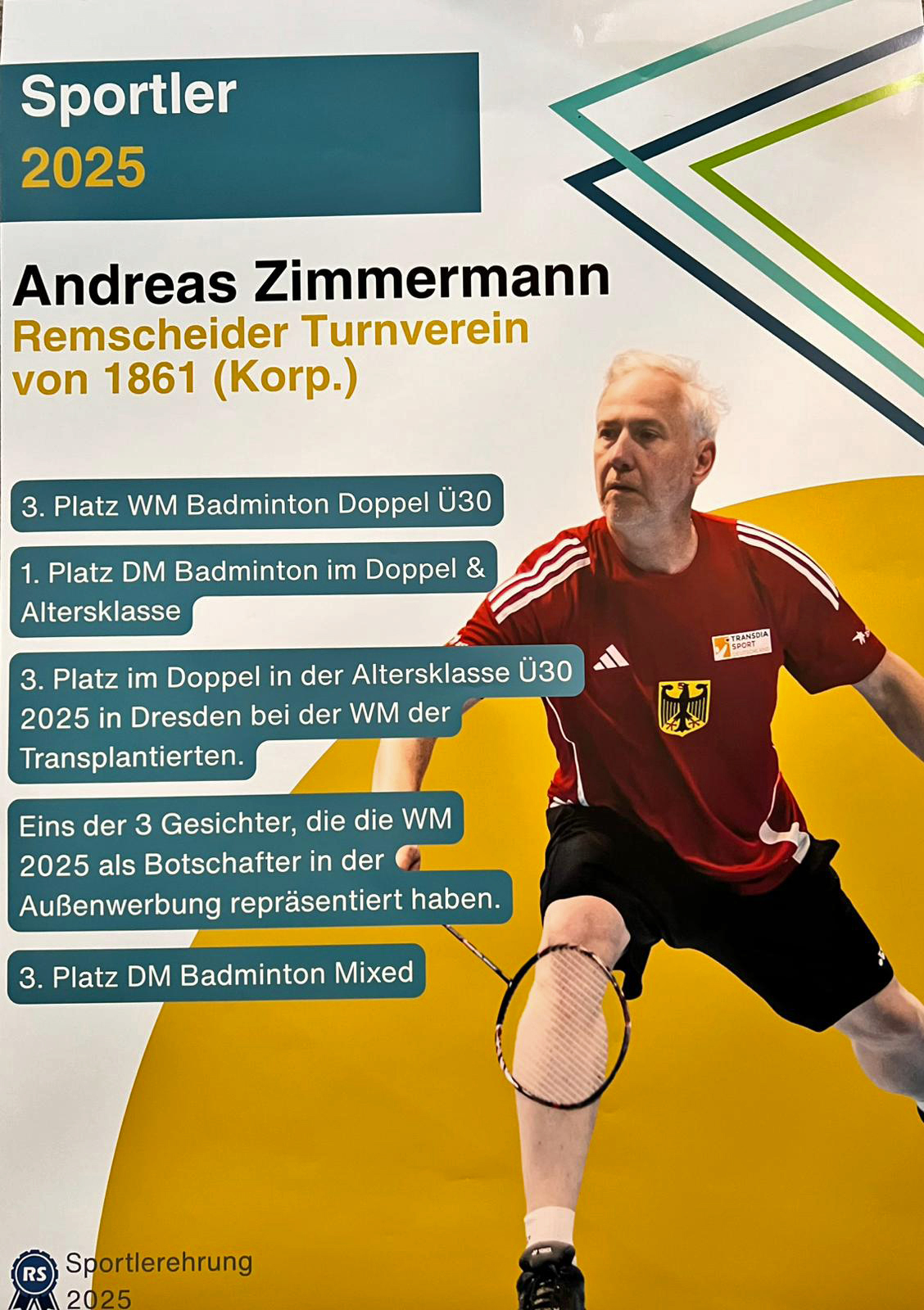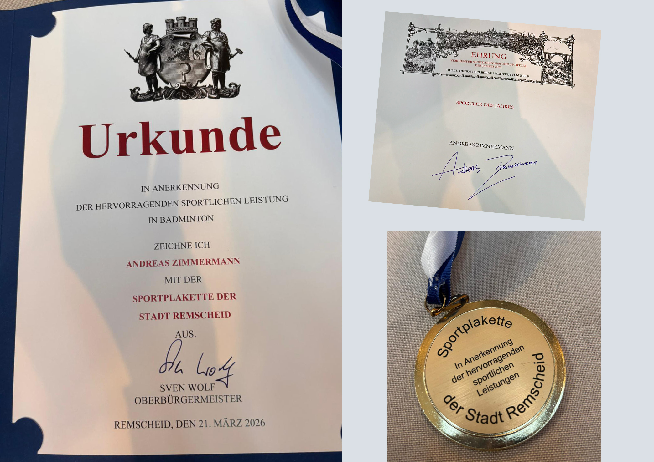 RTV-Badmintonspieler Andreas Zimmermann wurde bei der Sportlerehrung am 21.03.2026 zum